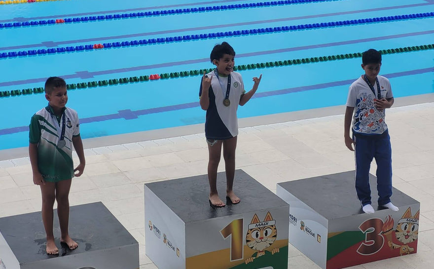 Excelente desempeño deportivo de nuestros estudiantes representantes en diferentes categorías de natación. Junto al profe David Anacona, lograron muy buenos resultados ¡Felicitaciones a los deportistas ! Samantha Ávila medalla de oro 100 mts pecho y Nicolás Martínez medalla de bronce 100 mtrs pecho.